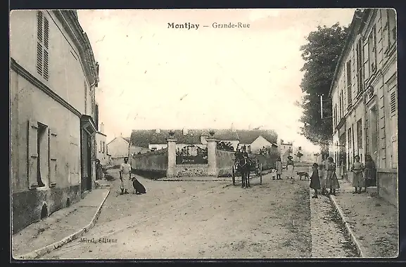 AK Montjay, Grande-Rue avec passants et charrette à cheval