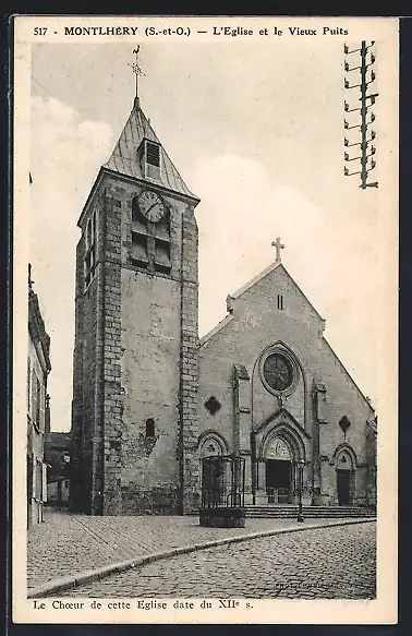 AK Montlhéry, L`Église et le Vieux Puits, le chœur date du XIIe siècle