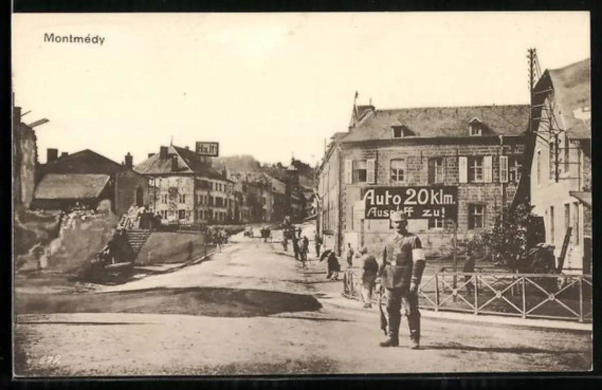 AK Montmédy, Rue principale animée avec passants et bâtiments historiques