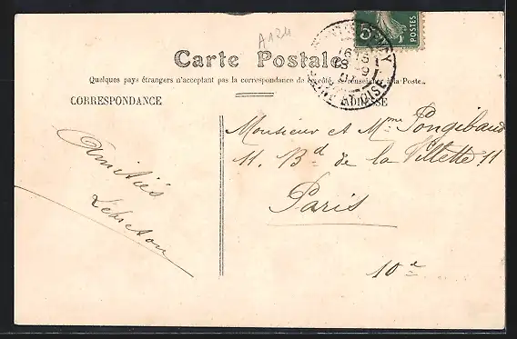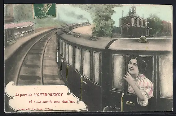 AK Montmorency, Départ en train avec message amical