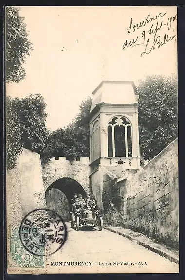 AK Montmorency, La rue St-Victor et sa voûte avec une voiture ancienne