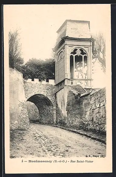 AK Montmorency, Rue Saint-Victor avec tour et passage voûté en pierre