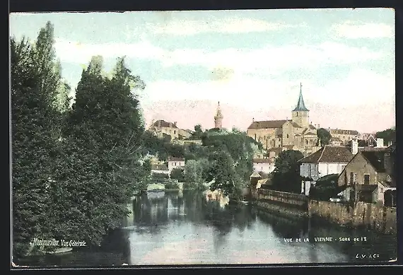 AK Montmorillon, Vue de la Vienne et de l`église en arrière-plan