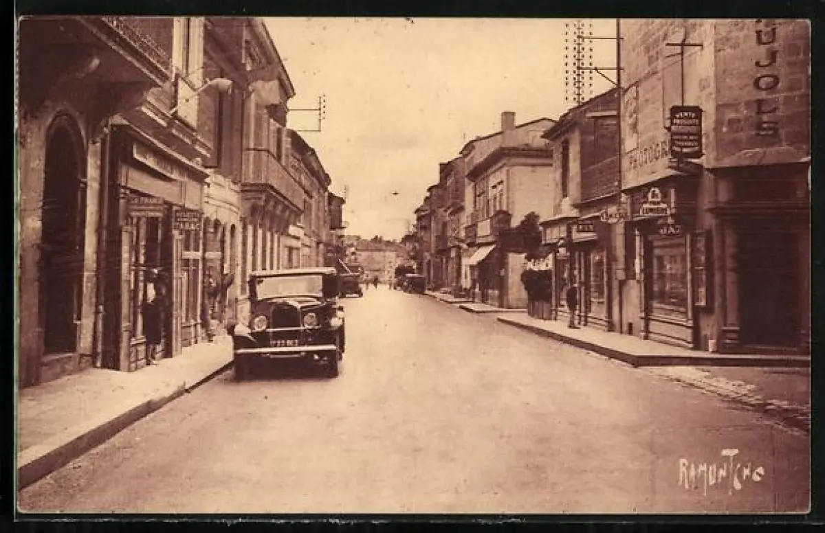 AK Montpon-sur-l`Isle, Rue principale avec voitures et commerces