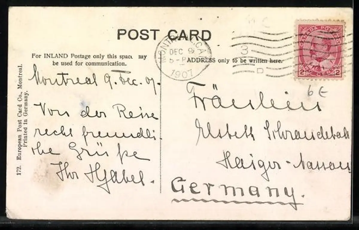 alte Ansichtskarte, gelaufen 1907, Stempelspur, Eckknick re. u., Bugspur mitte links, guter Zustand