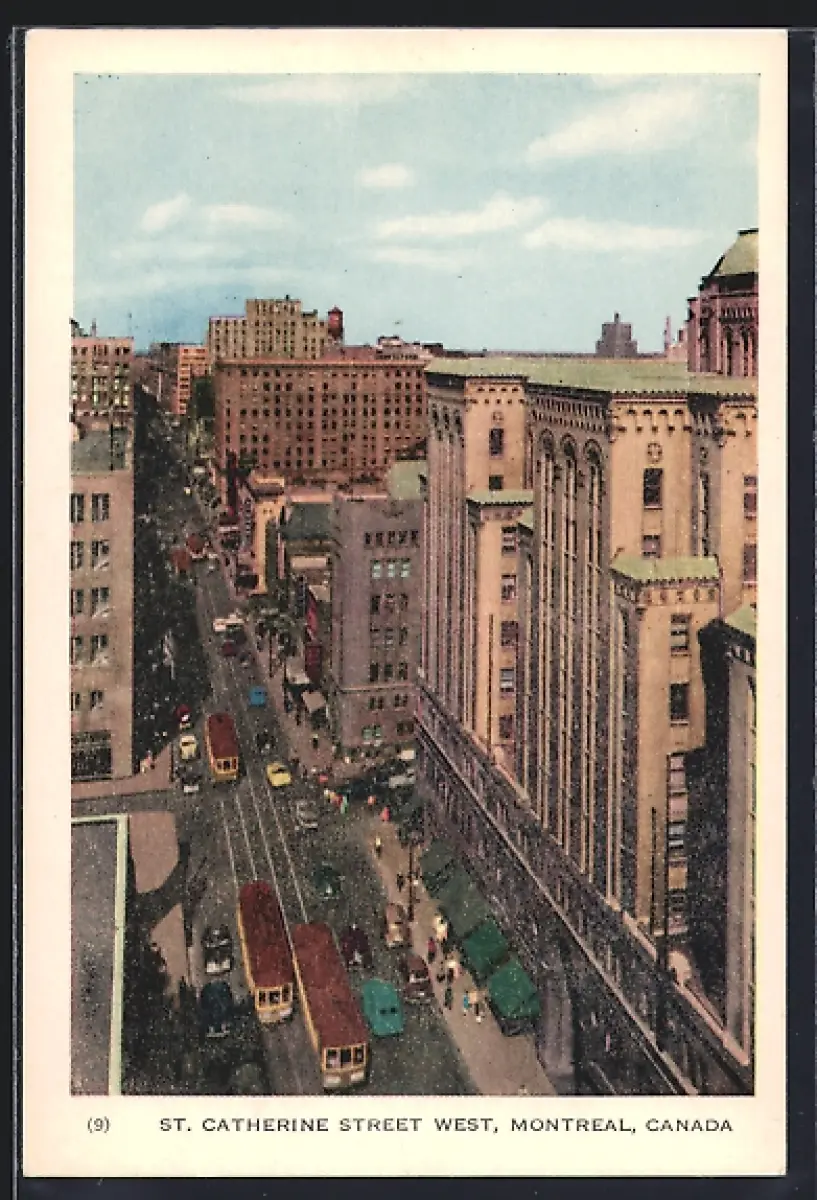 AK Montreal, St. Catherine Street West, Strassenbahn
