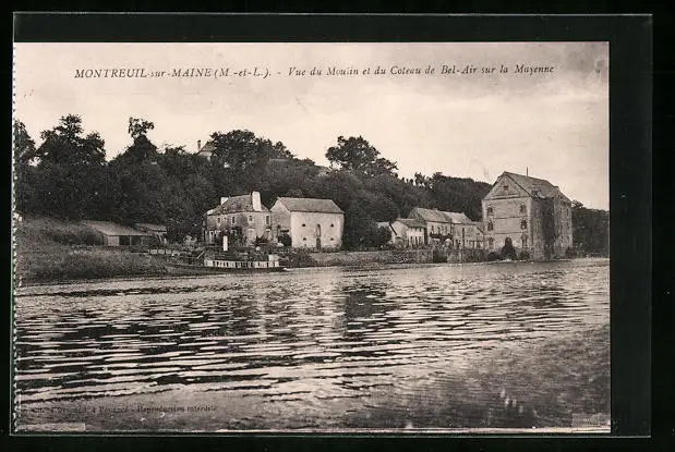 AK Montreuil-sur-Maine, Vue du Moulin et du Coteau de Bel-Air sur la Mayenne