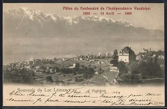 AK Montreux, Chateau de Chatelard, Fêtes du Centenaire de l`Indépendance Vaudoise 1903, Vue générale