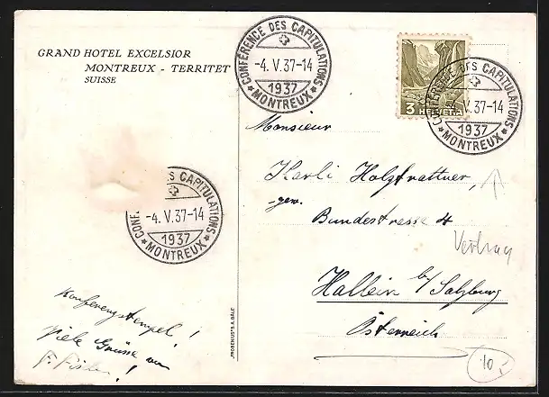 gelaufen 1937, Briefmarke entfernt, guter Zustand