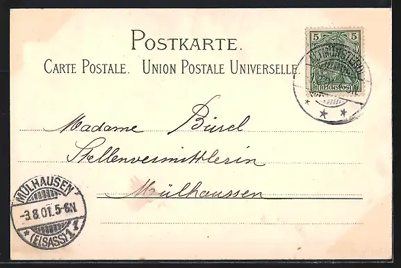 alte Ansichtskarte, gelaufen 1901, guter Zustand