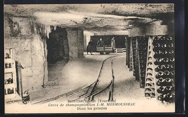 AK Montrichard, Caves de champagnisation J.-M. Monmousseau dans les galeries