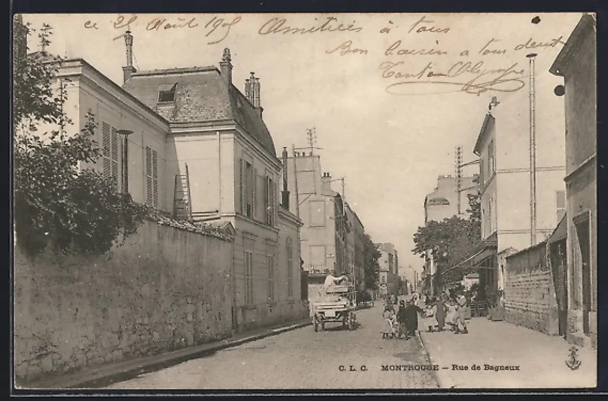 AK Montrouge, Rue de Bagneux avec passants et charrette