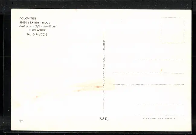 AK Moos in Sexten, Pasticceria-Cafe-Konditorei Happacher, Innenansicht