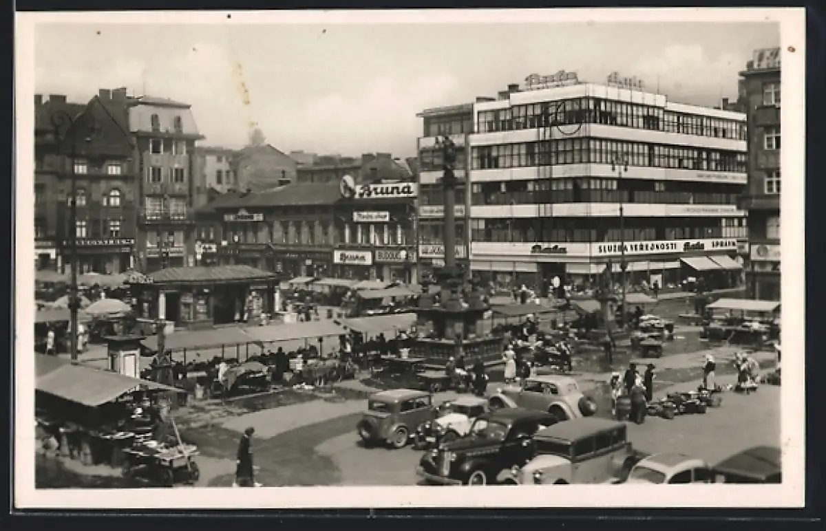 AK Mor /Mähr, Ostrava, Hauptplatz, Autos