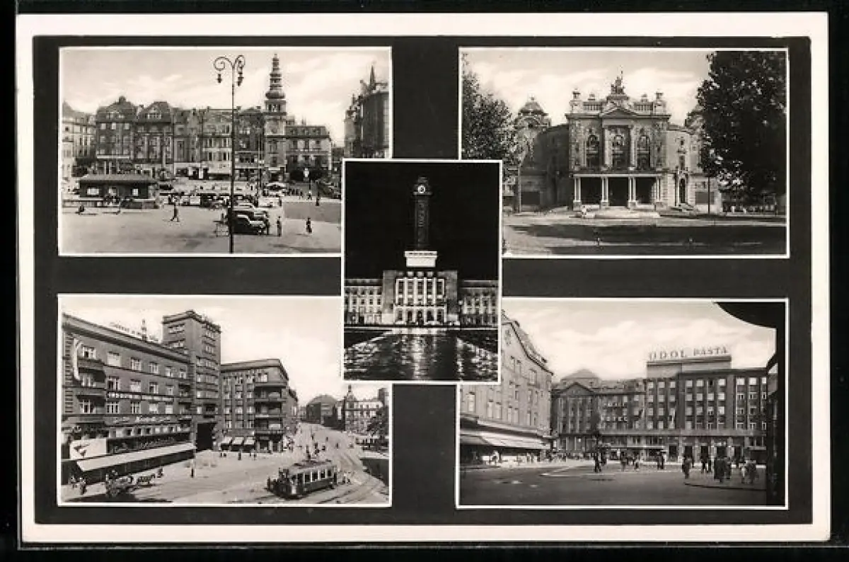 AK Mor Ostrava, Firma Odol Pasta, Strassenbahn, verschiedene Ansichten