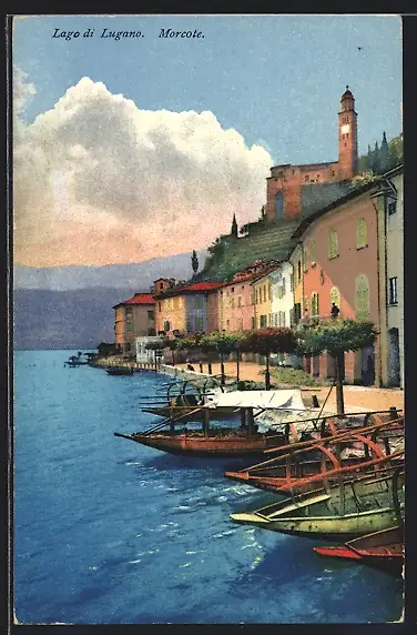 AK Morcote, Lago die Lugano, Boote am Ufer
