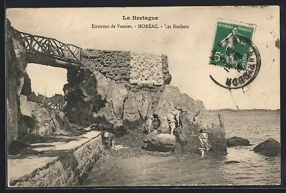 AK Moréac, Les Rochers près de la mer avec pont en arrière-plan