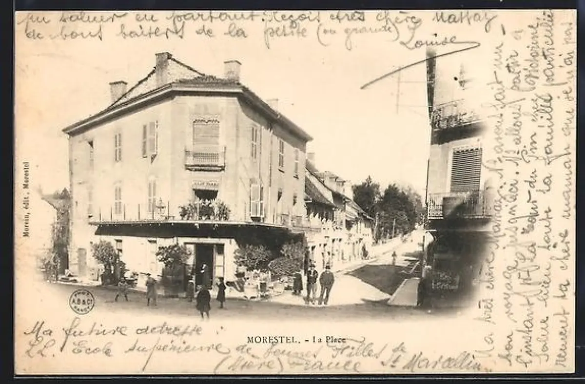 AK Morestel, La Place avec coin animé et bâtiments anciens