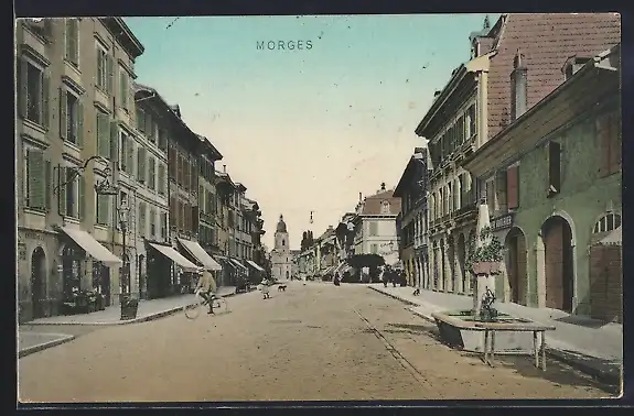 AK Morges, Strassenpartie mit Kirche