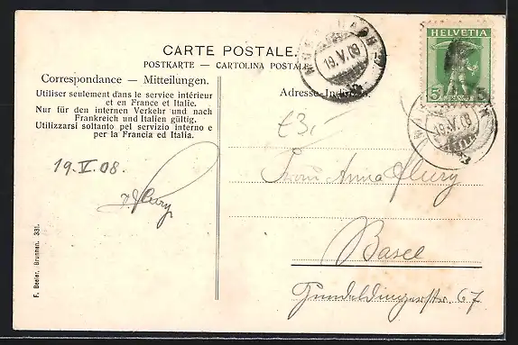 alte Ansichtskarte, gelaufen 1908, guter Zustand