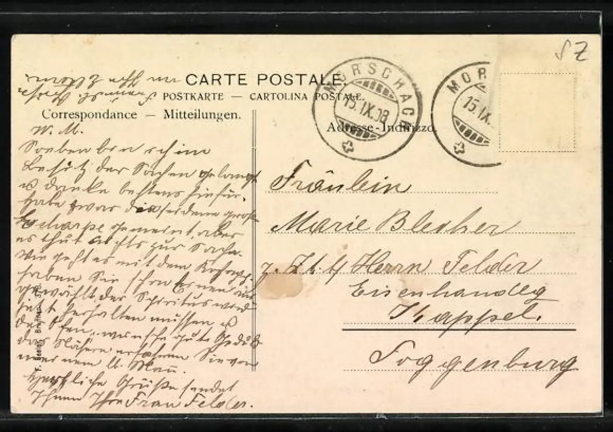alte Ansichtskarte, gelaufen, Briefmarke entfernt, guter Zustand