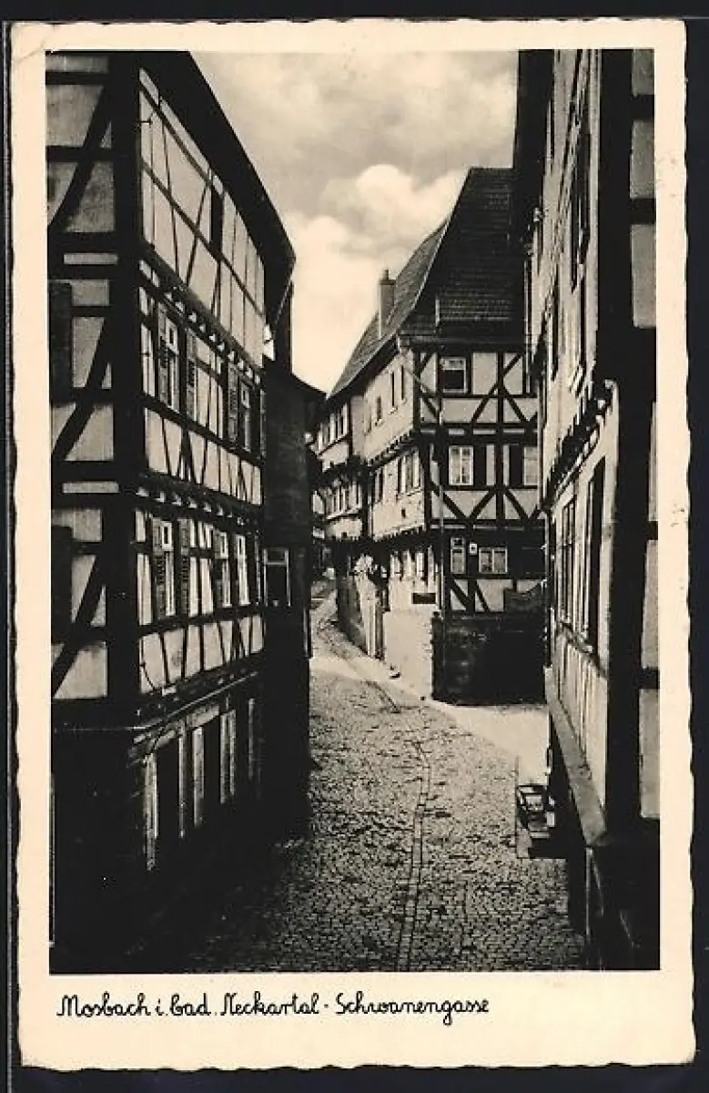 AK Mosbach / Baden, Schwanengasse, Fachwerkhäuser, Strassenpartie