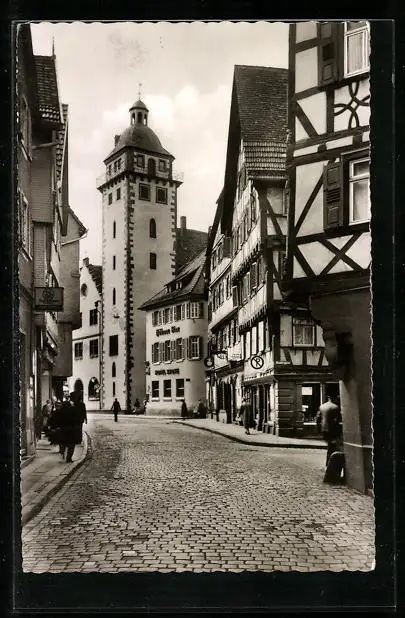 AK Mosbach, Hauptstrasse mit Rathaus