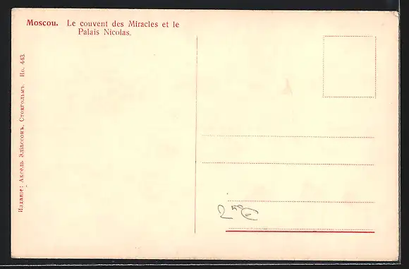 AK Moscou, Le couvent des Miracles et le Palais Nicolas