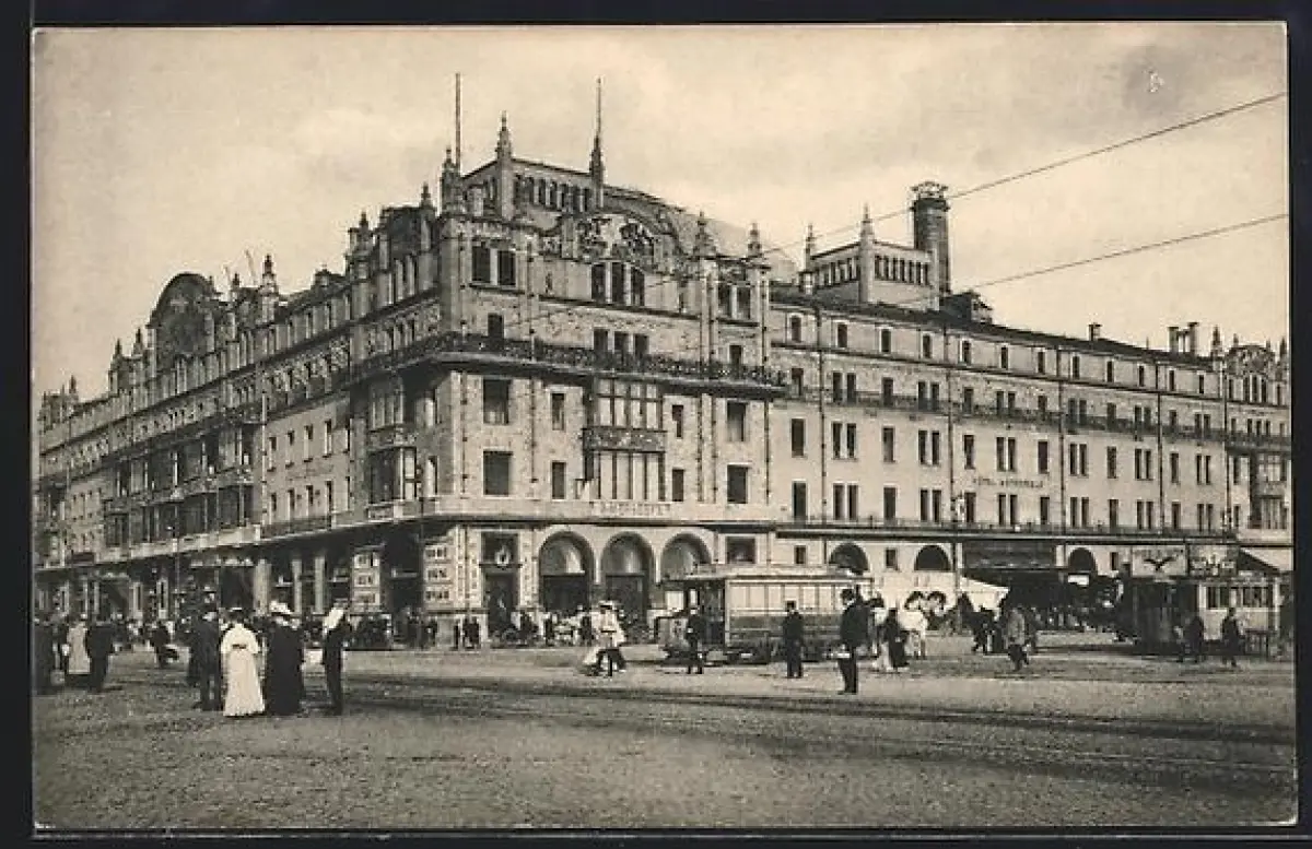 AK Moscou, Place de théatre, Hotel Metropole, Strassenbahn
