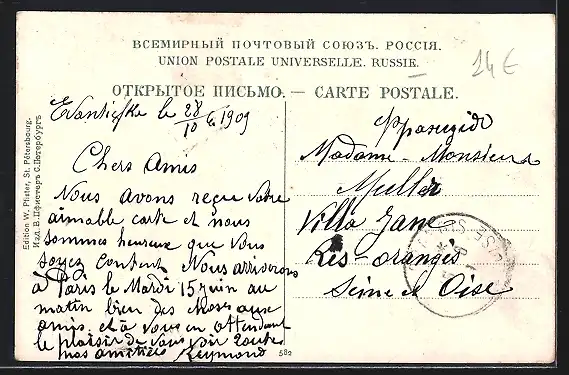 alte Ansichtskarte, gelaufen 1909, Briefmarke entfernt, guter Zustand