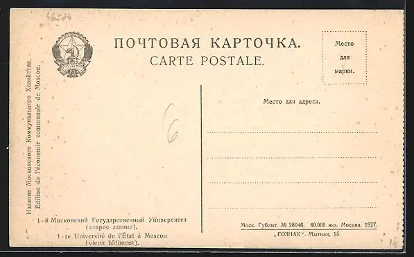 AK Moscou, Université de l`Etat à Moscou, vieux batiment
