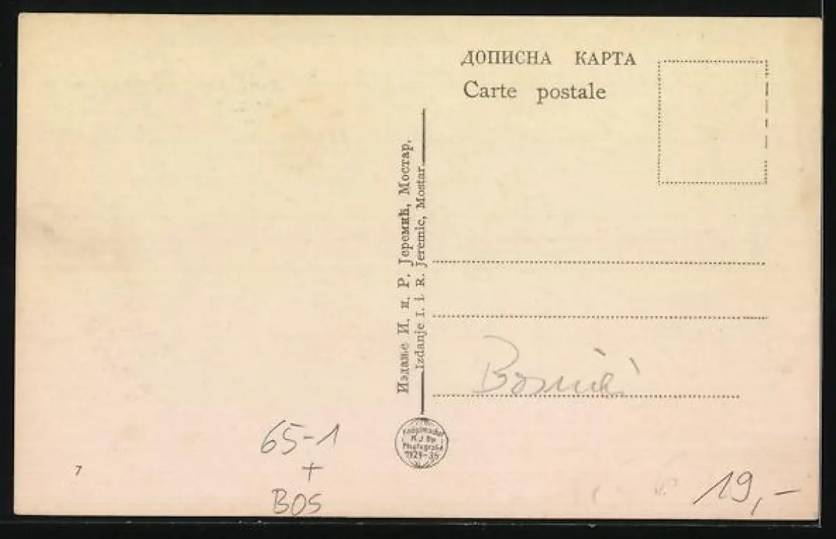 AK Mostar, Bahnhof mit Gleisanlagen und Güterzug