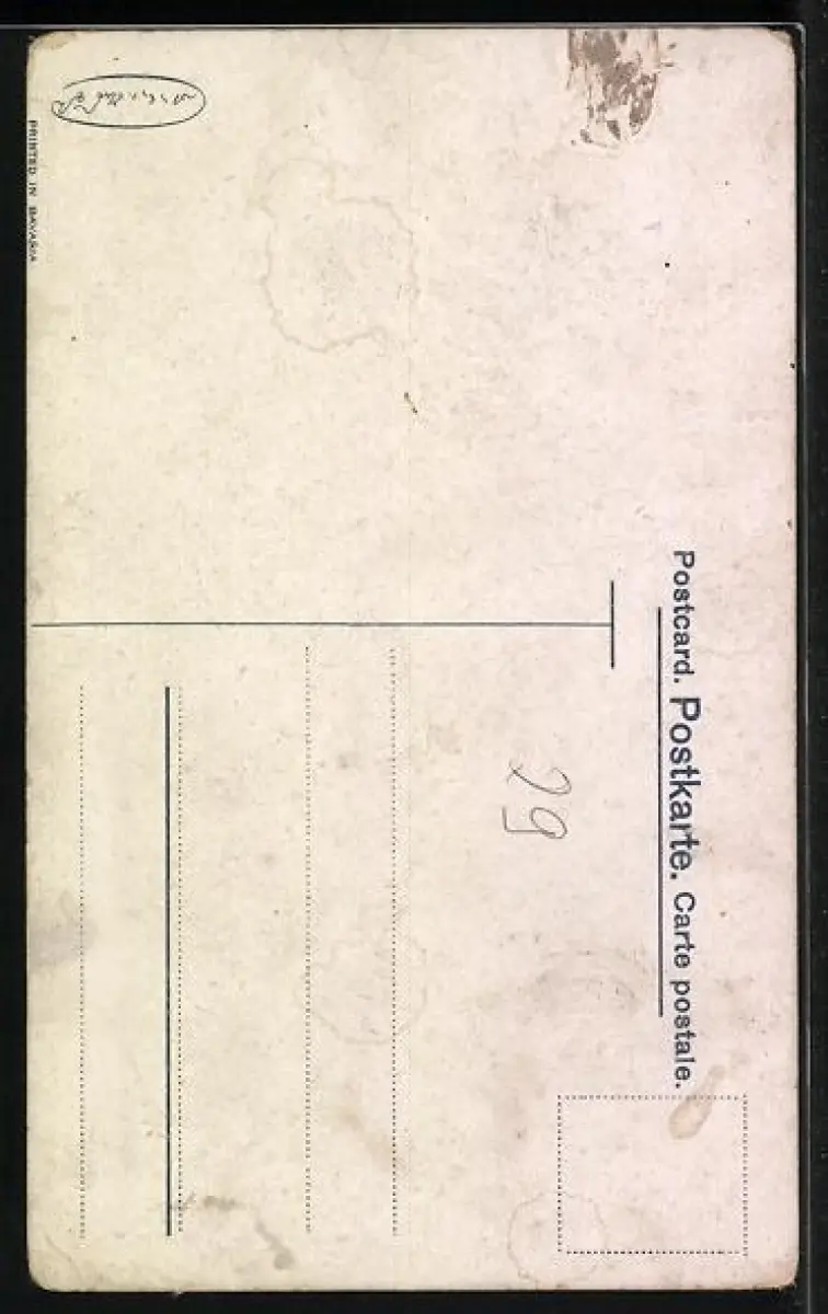 alte Ansichtskarte, ungelaufen, Eckknick rechts unten, rückseitig Oberflächenschaden, sonst guter Zustand