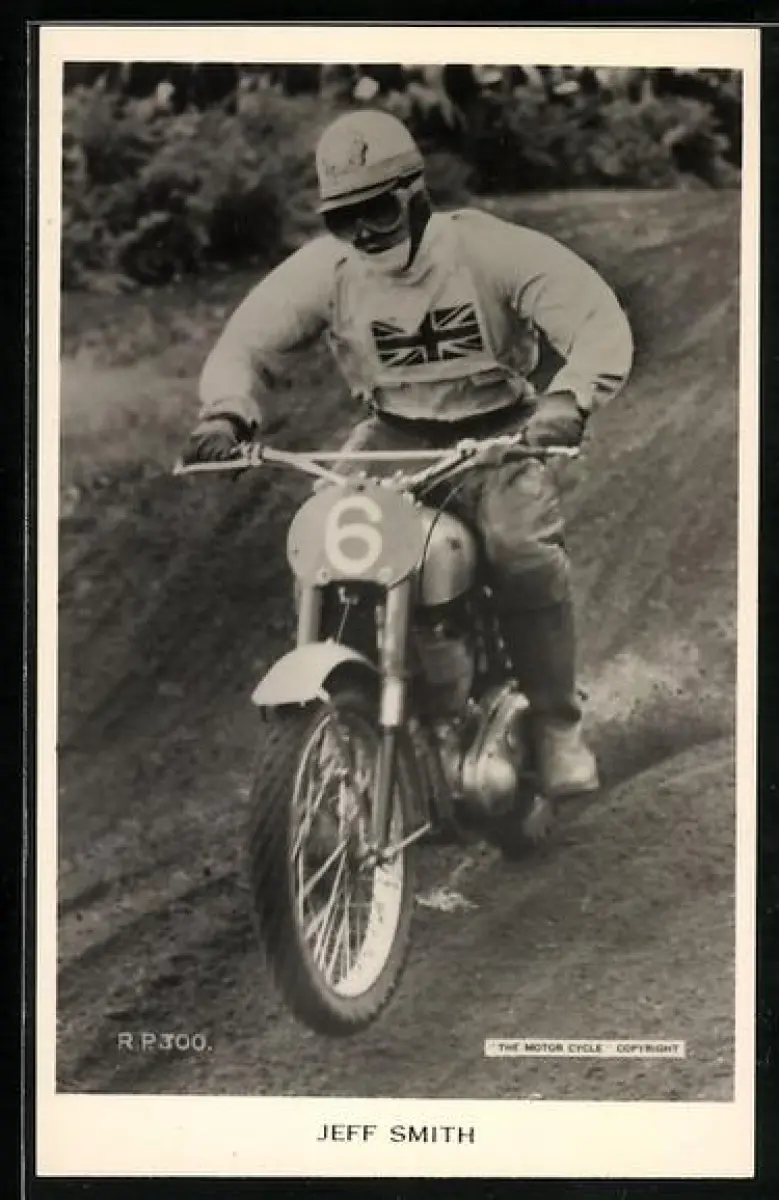 AK Motorradrennfahrer Jeff Smith auf seiner Maschine, The Motor Cycle