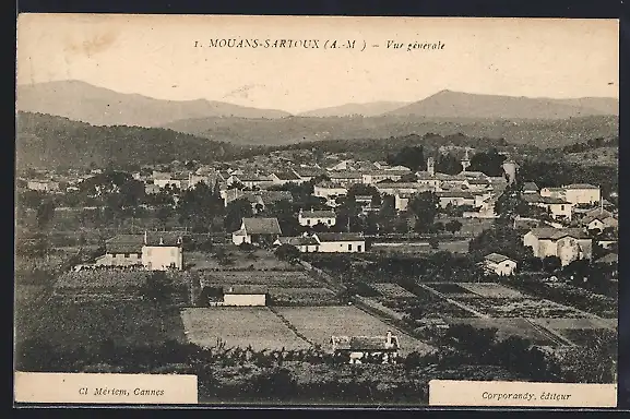 AK Mouans-Sartoux, Vue générale du village et des champs environnants
