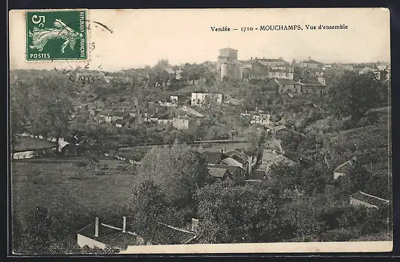 AK Mouchamps, Vue d`ensemble du village dans la campagne de Vendée