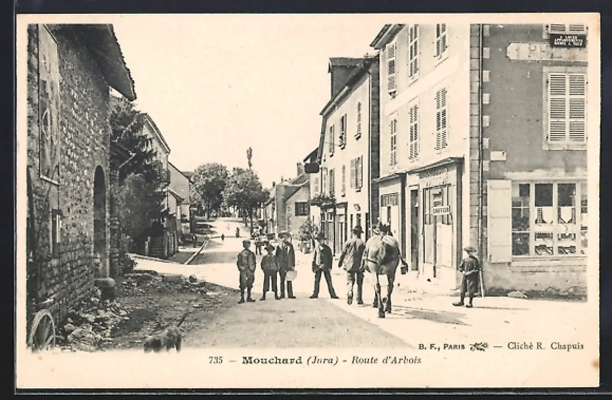 AK Mouchard /Jura, Route d`Arbois avec habitants et cheval