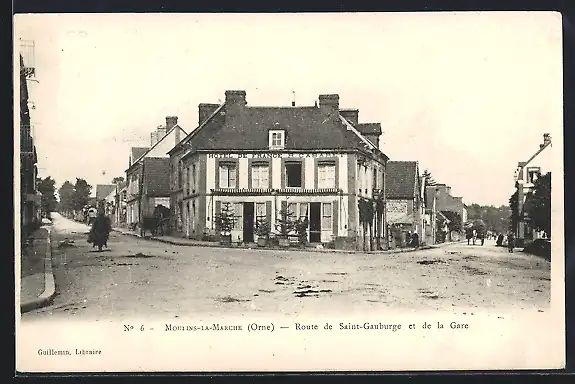 AK Moulins-la-Marche, Route de Saint-Gauburge et de la Gare