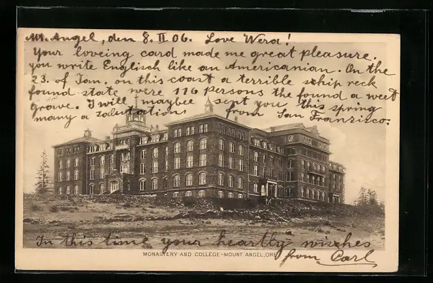 alte Ansichtskarte, gelaufen 1906, Briefmarke entfernt, rückseitig Oberflächenschaden, guter Zustand