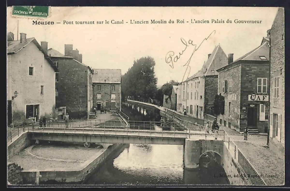 AK Mouzon, Pont tournant sur le Canal, L`ancien Moulin du Roi, L`ancien Palais du Gouverneur