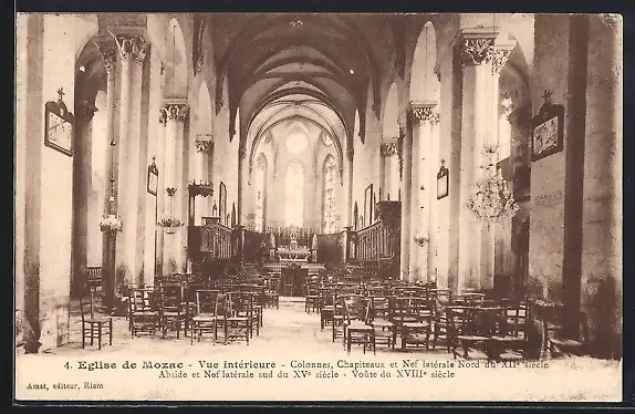AK Mozac, Vue intérieure de l`église avec colonnes et voûte du XVIIIe siècle
