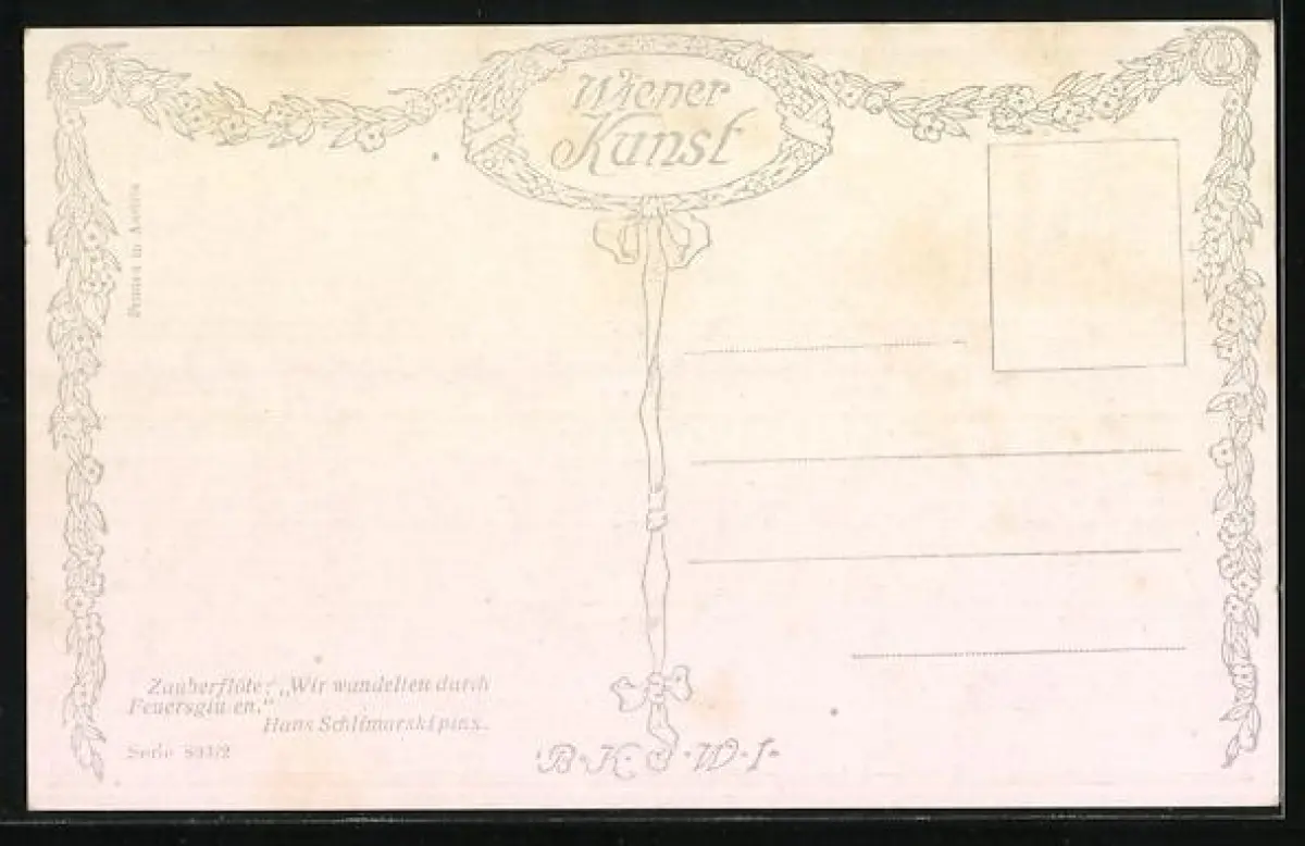 AK Mozart, Zauberflöte, Wir wandeln durch Feuersgluten, Mann spielt Flöte, Sphinx
