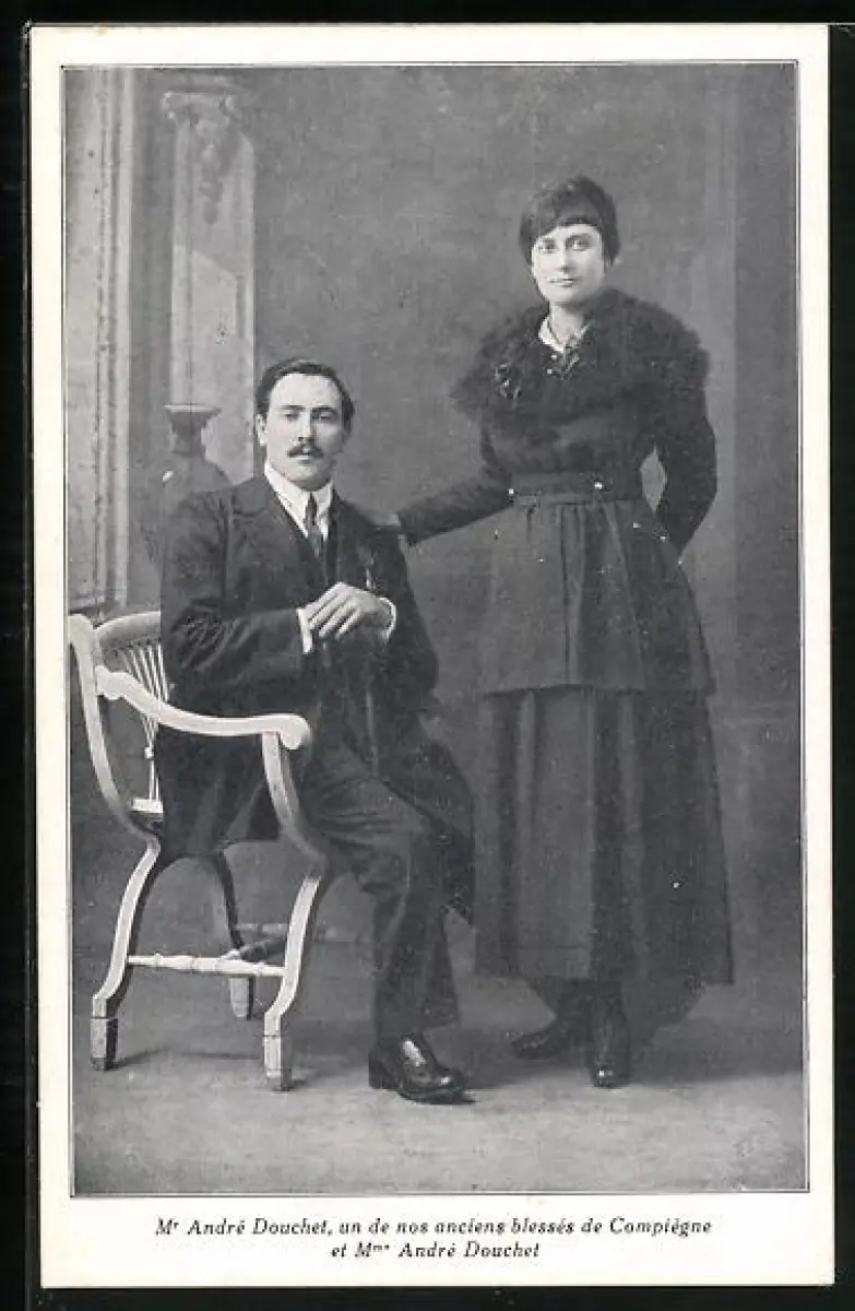 AK Mr André Douchet, un de nos anciens blessés de Compiègne et Mme André Douchet