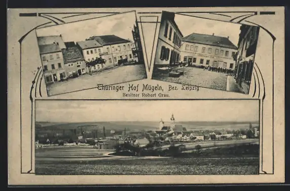 AK Mügeln, Gasthaus Thüringer Hof, Ortsansicht