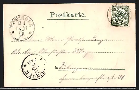 alte Ansichtskarte, gelaufen 1899, guter Zustand