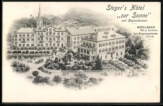 AK Mühlbach bei Franzensfeste, Steger`s Hotel zur Sonne mit Dependancen