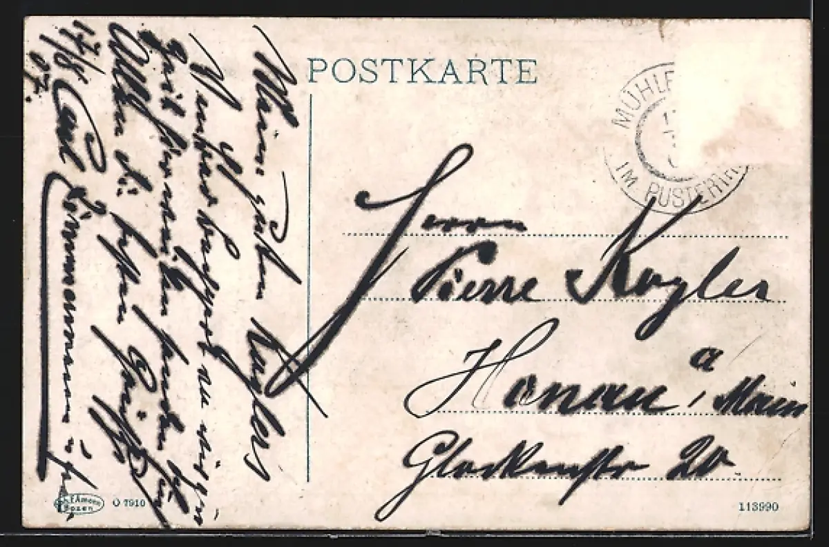 alte Ansichtskarte, gelaufen, Briefmarke entfernt, rückseitig Oberflächenschaden, Eckknick li. unten, kleiner Einriss li. oben