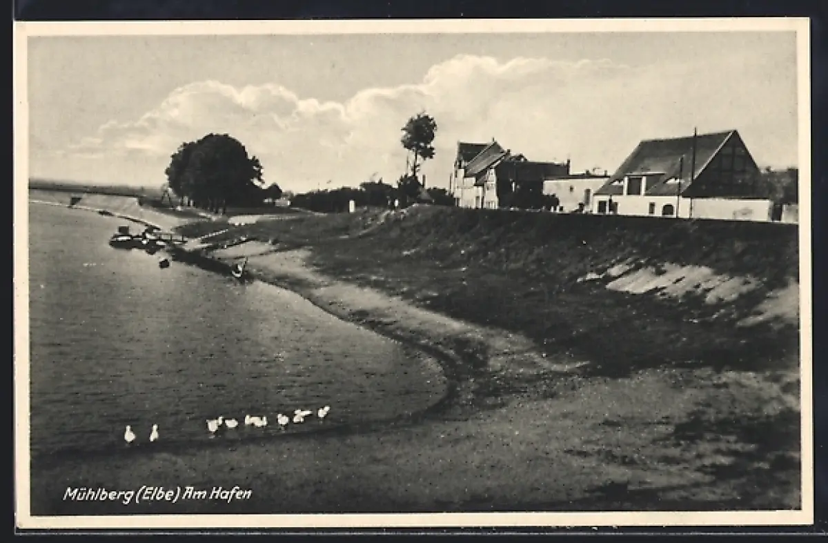 AK Mühlberg /Elbe, Am Hafen