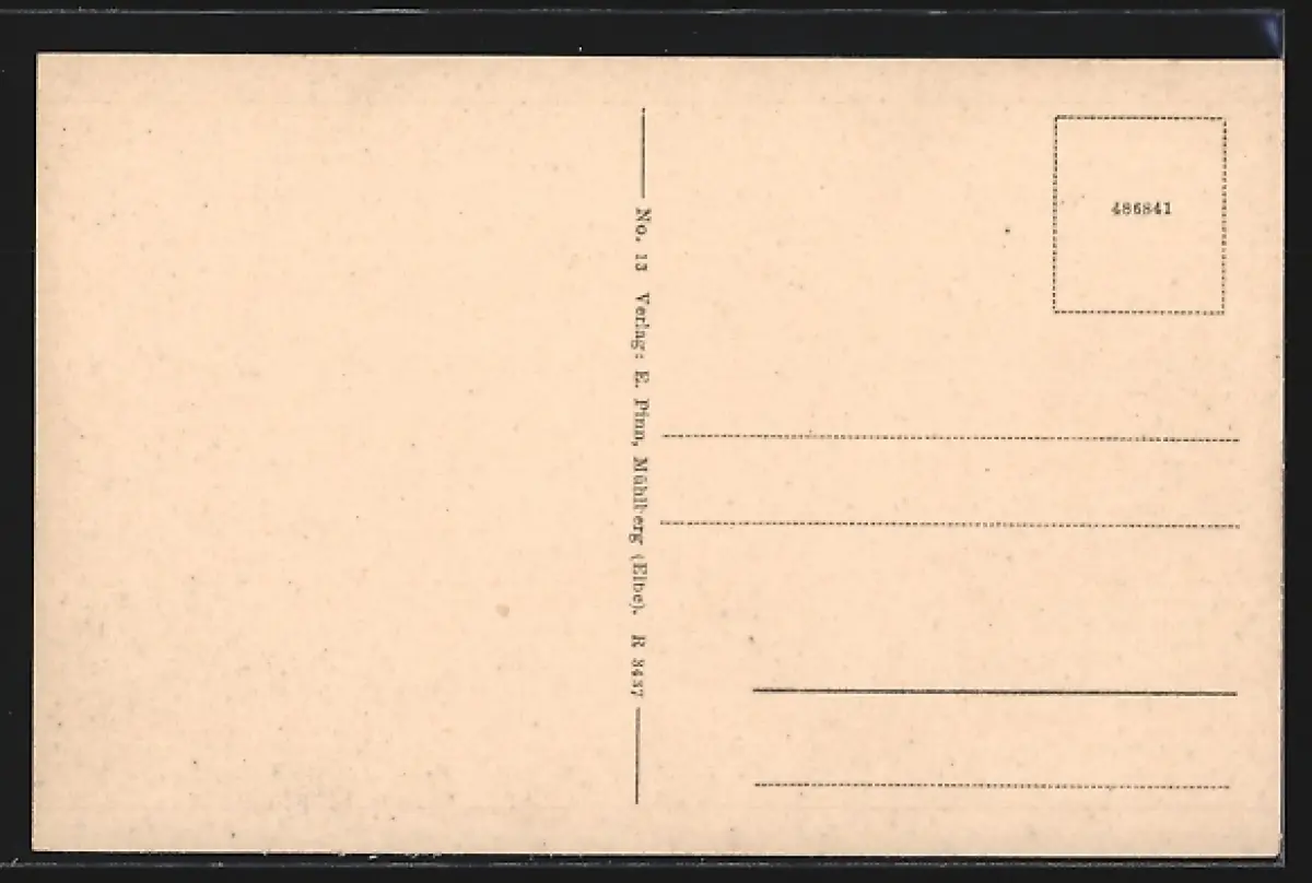 Personenbezogene Daten auf der Rückseite der Karte wurden durch blauen Textmarker unkenntlich gemacht. Die blauen Stellen sind auf die Vorderseite durchgeweicht und wirken sich negativ auf das Postkartenfoto aus