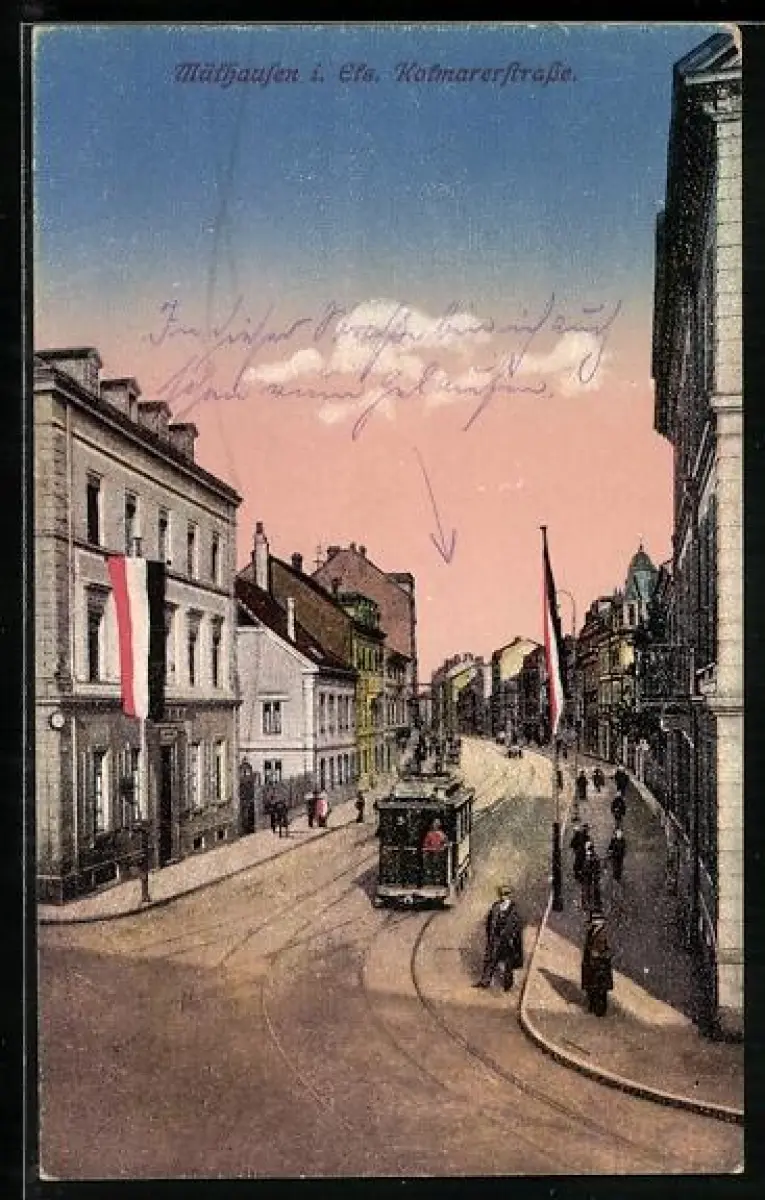 AK Mühlhausen / Els., Kolmarerstrasse mit Strassenbahn